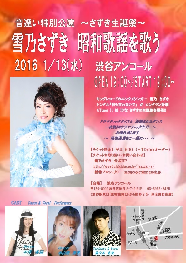 近年は毎年「さずき生誕祭」を1月に開催 2016年は昭和歌謡ショーをお届けしました